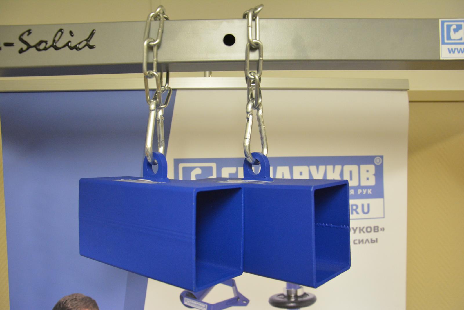 Блоки металлические от компании СИЛАРУКОВ с креплением для подтягиваний на турнике. В комплект входят: 2 металлических блока шириной 80 мм, 2 карабина диаметром 8 мм, 2 цепи длинной 36 см каждая.