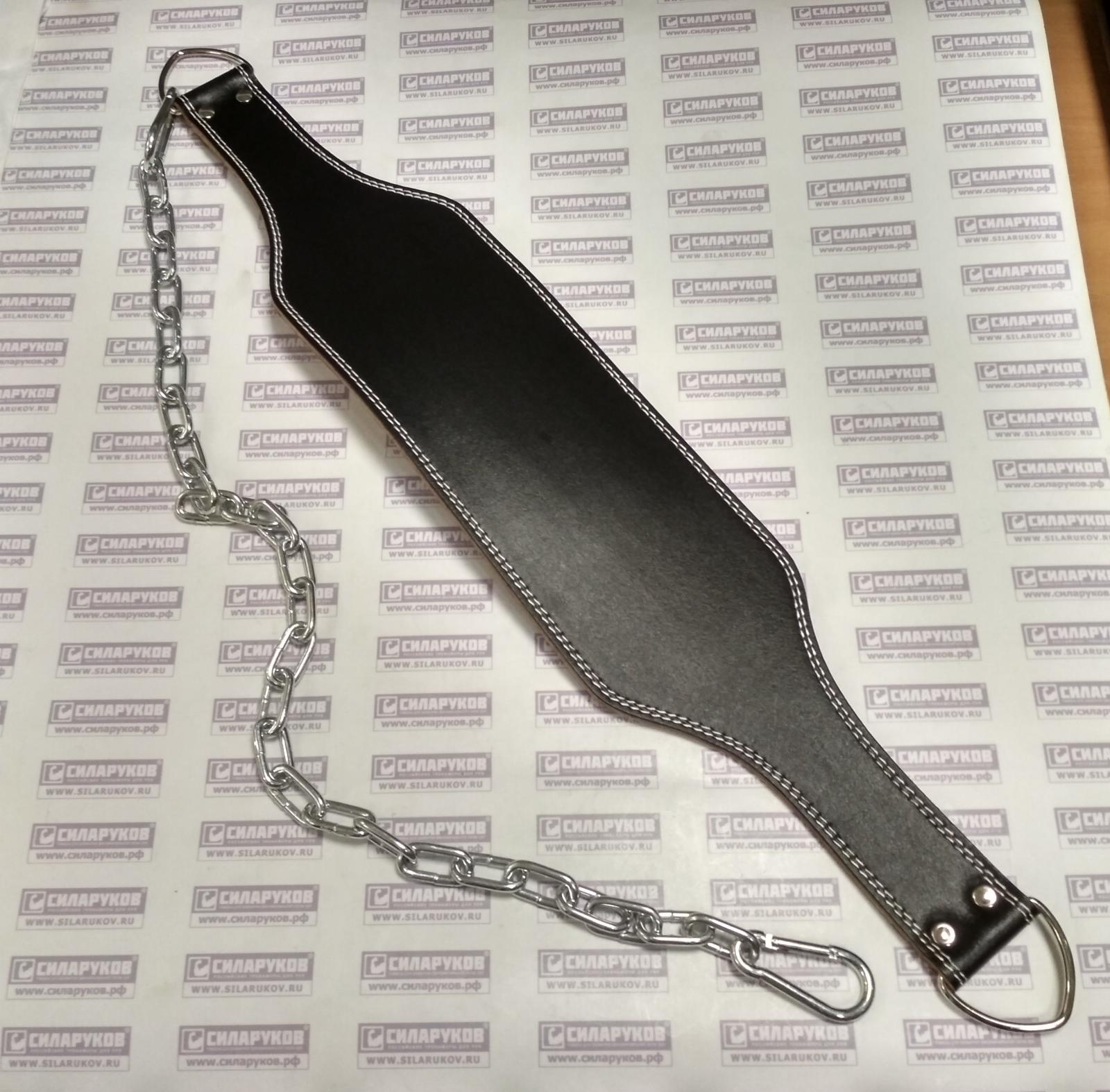 Материал — кожа, снабжен цепью с 2 карабинами и двумя стальными полукольцами.