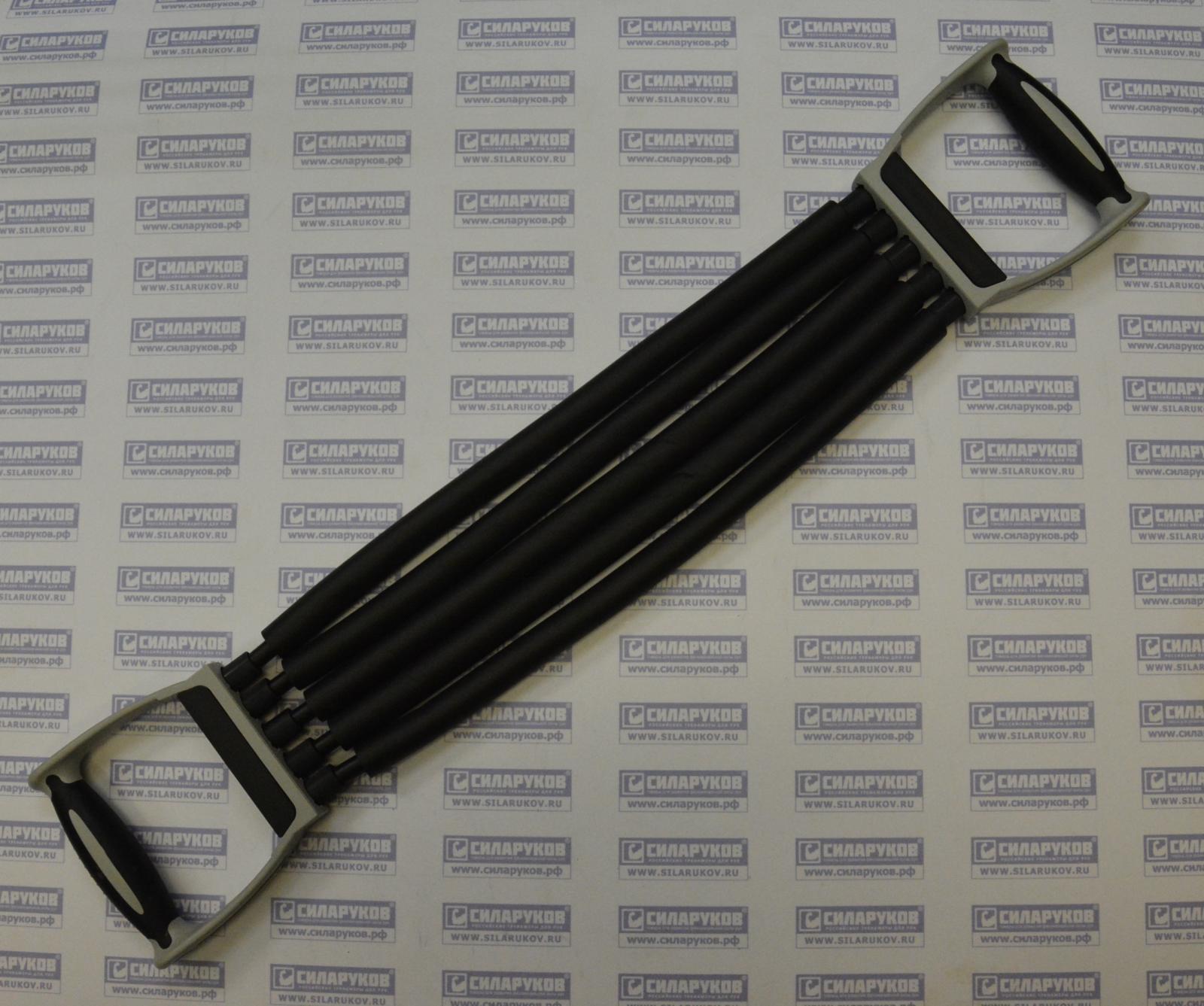 Эспандер растяжения, самая распространённая модель в виде нескольких пружин с ручками по краям, используется для тренировки многих групп мышц, но в основном плечевого пояса. Резинки на креплениях легко снимаются, нагрузка при этом падает прямопропорционально.