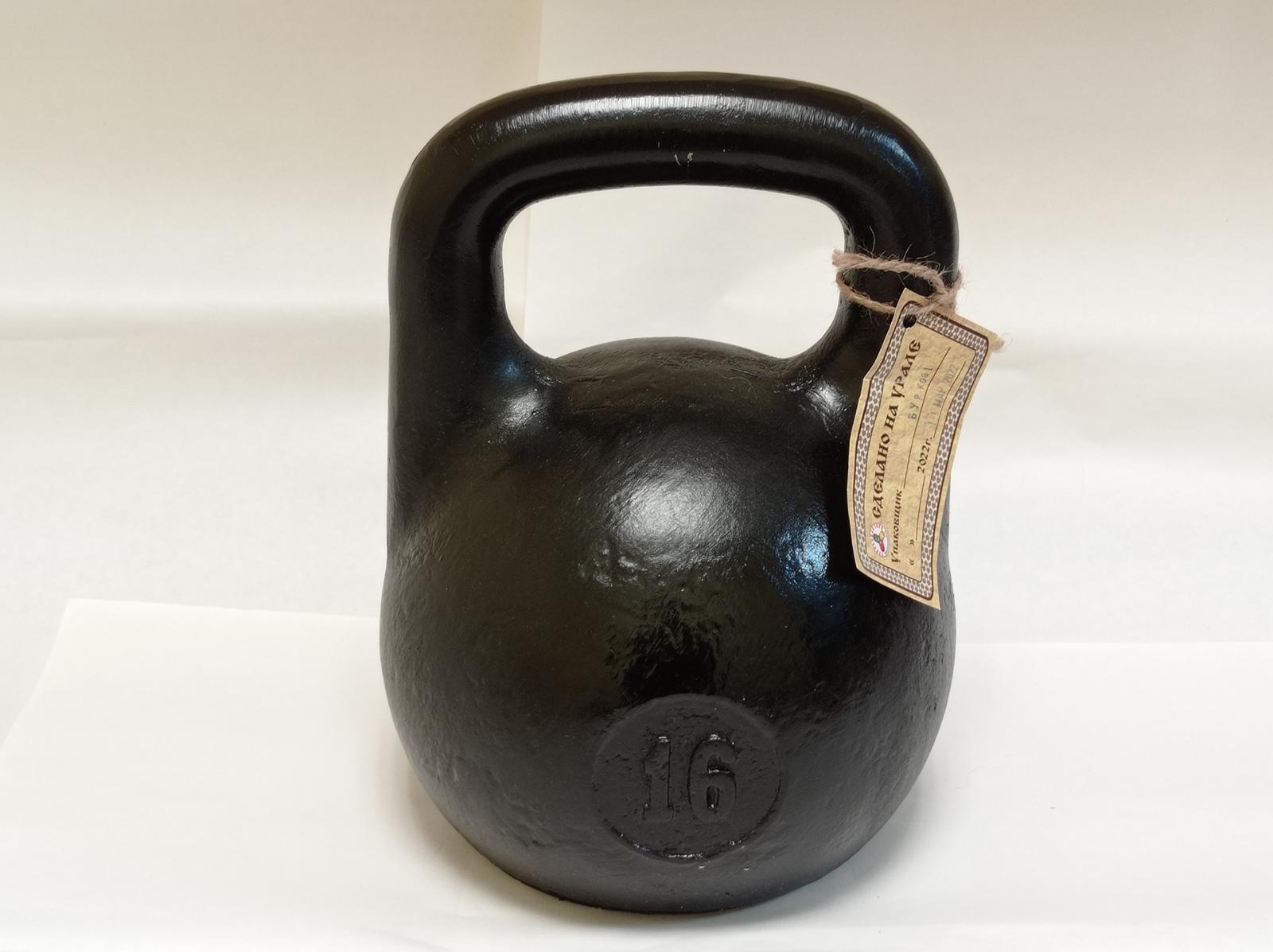 Гиря Уральская чугунная с узкой рукояткой весом 16 кг. Доставка по Москве в пределах МКАД - 750 руб. Средняя стоимость доставки по России - 1000 руб (зависит от конкретного города).