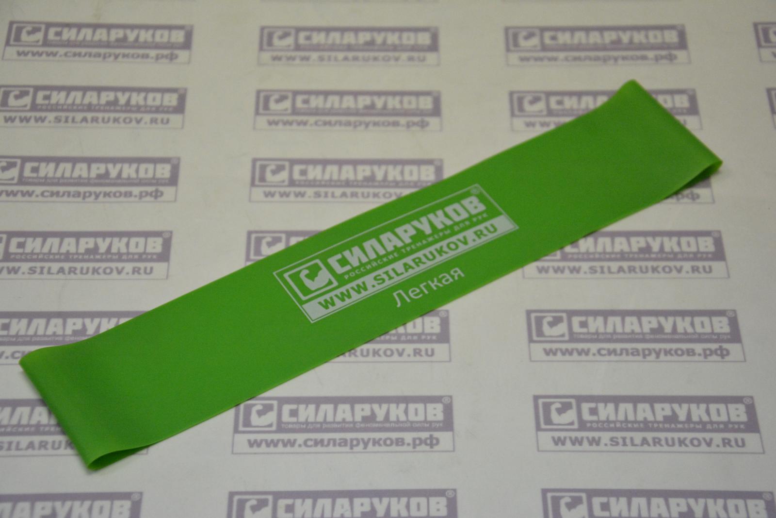 Мини петля СИЛАРУКОВ зелена (легкая) длиной окружности 50 см и шириной 5 см самая легкая из 4 по нагрузке сопротивления. Именно с нее надо начинать тренировку для разогрева мышц.