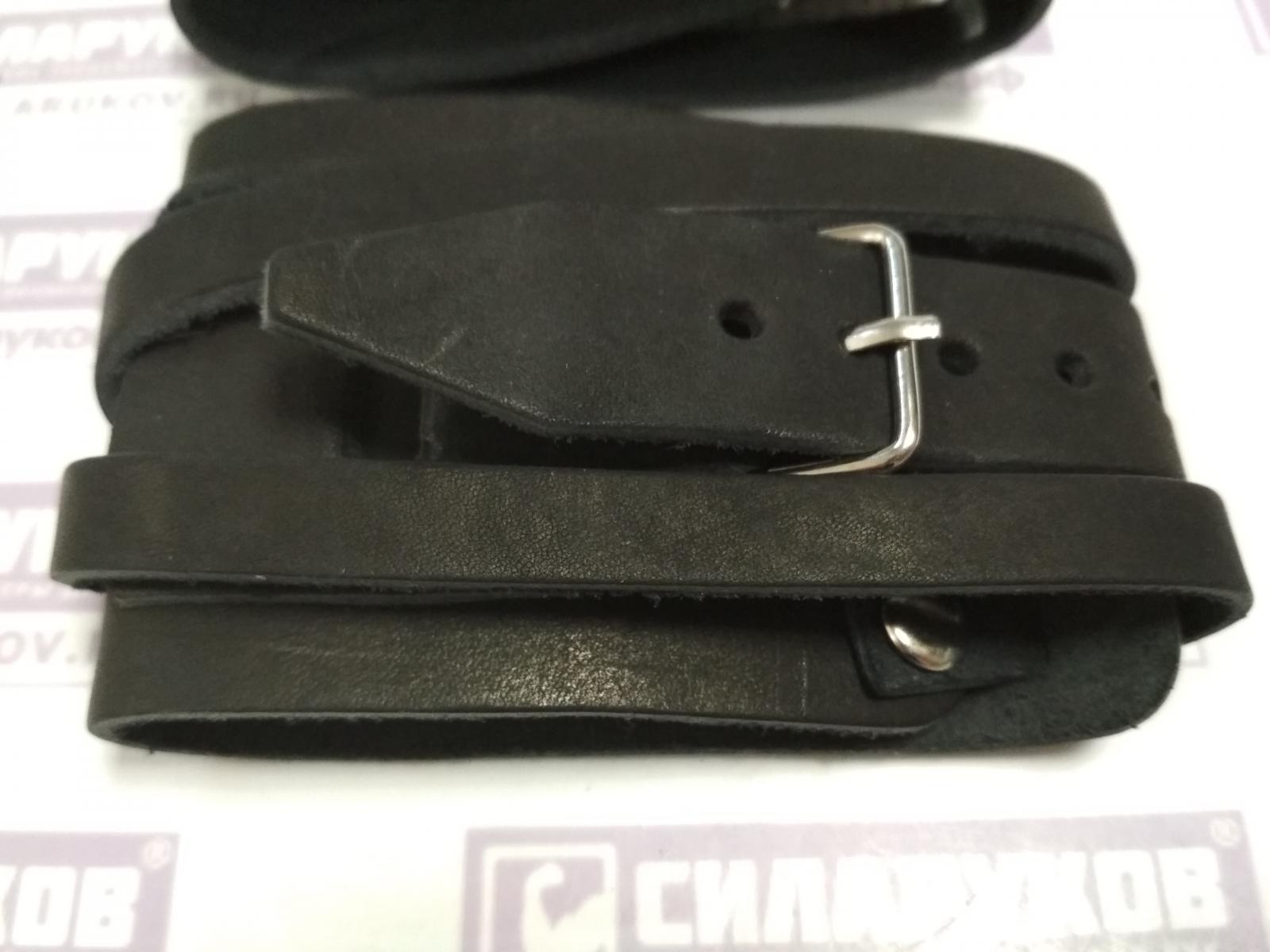 Напульсник тяжелоатлетический из мягкой кожи черного цвета.
