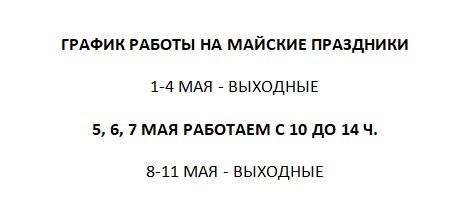 1-4 мая и 8-11 мая - магазин Силаруков не работает. 5, 6, 7 мая работаем с 10 до 14 ч.